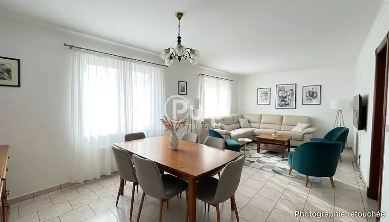 Au rez-de-chaussée, vous découvrirez une très belle pièce de vie spacieuse et lumineuse, idéale pour recevoir famille et amis, ainsi qu'une salle d'eau récente.