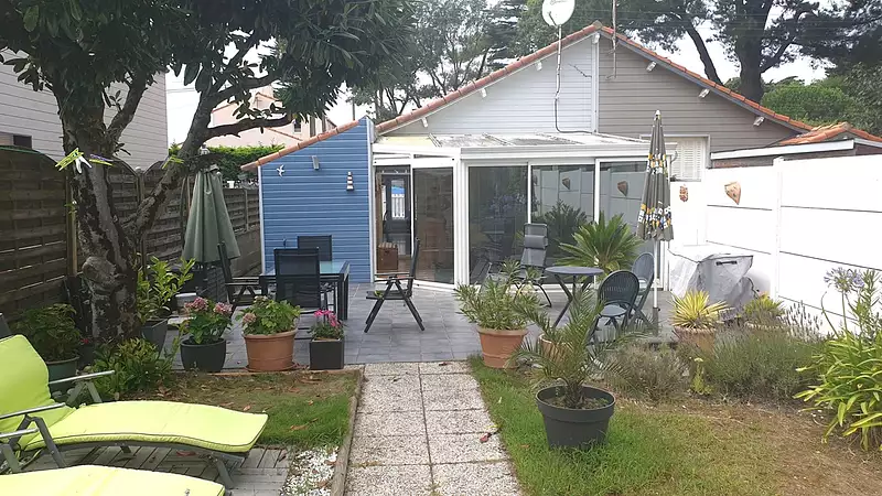 Le cormier maison de vacances située à 70 m de la plage et 900 m des commerces de Tharon-Plage, comprenant une superficie habitable de 74m² composée comme suit: Cuisine aménagée équipée ouverte sur séjour , véranda chauffée et isolée ,deux belles chambres , salle d'eau , wc, . Débarras en fond de parcelle d'environ 6.50m². Le tout sur un jardin clos sans vis à vis de 225m². (5.00 % honoraires TTC à la charge de l'acquéreur.)