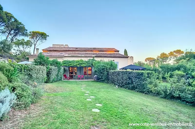 Unique, venez découvrir votre future et charmante maison de 74 m² loi carrez située dans une aile d'un château nichée au sein d'un prestigieux domaine s'étendant sur plus de 10 200 m² de parc verdoyant proche des commodités. Idéale pour les amoureux de la nature, elle offre un accès direct à des sentiers de randonnée, à la Via Venaissia et aux majestueuses Dentelles de Montmiral situées à proximité. Au rez-de-jardin, vous serez accueilli par une entrée avec rangement qui s'ouvre sur une cuisine américaine entièrement équipée, ainsi qu'un espace de vie lumineux et un toilettes indépendant. Le séjour se prolonge sur une charmante terrasse ombragée par une tonnelle, et sur un jardin privatif de 137 m², parfait pour savourer des moments de détente en plein air. A l'étage, les deux chambres partagent une terrasse offrant une vue imprenable, ainsi qu'une salle de bains avec toilettes. Le second étage abrite une chambre mansardée climatisée, accompagnée de sa salle d'eau. Vous profiterez d'une immense piscine, avec deux transats réservés par maison, ainsi que d'un local à vélos et de deux places de parking privatives tout en étant libéré de l'entretien des espaces verts. Ce bien d'exception est idéal tant pour une résidence principale que secondaire, avec la possibilité d'envisager une location saisonnière. Saisissez cette opportunité rare de vivre dans un cadre enchanteur, alliant confort et sérénité au coeur de la Provence ! Venez vite la découvrir ! Pour un achat en toute sérénité contactez Nabil au 06 64 27 89 01. Côté Ventoux Immobilier a le plaisir de vous accueillir dans ses agences disposant d'un parking à AUBIGNAN et MAZAN. Vous pouvez estimer gratuitement votre bien en ligne sur notre site : Les informations sur les risques auxquels ce bien est exposé sont disponibles sur le site Géorisques : www.georisques.gouv.fr Copropriété de 11 lots - dont 11 lots habitation. (Pas de procédure en cours). Charges annuelles : 3126 euros.