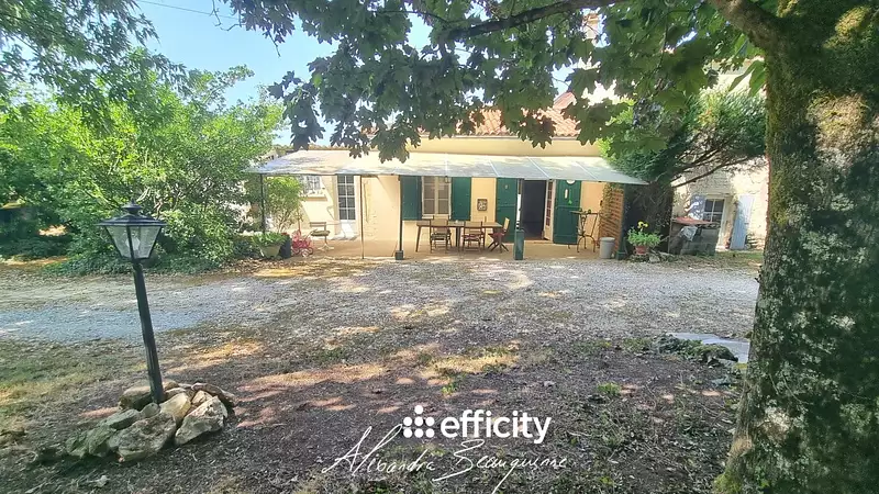 Cette petite maison de 74 m2 dispose d'une parc paysagé de 6000 m2 , ombragé, cabanon sur dalle, étendoir à linge, parc à jeux pour les enfants.