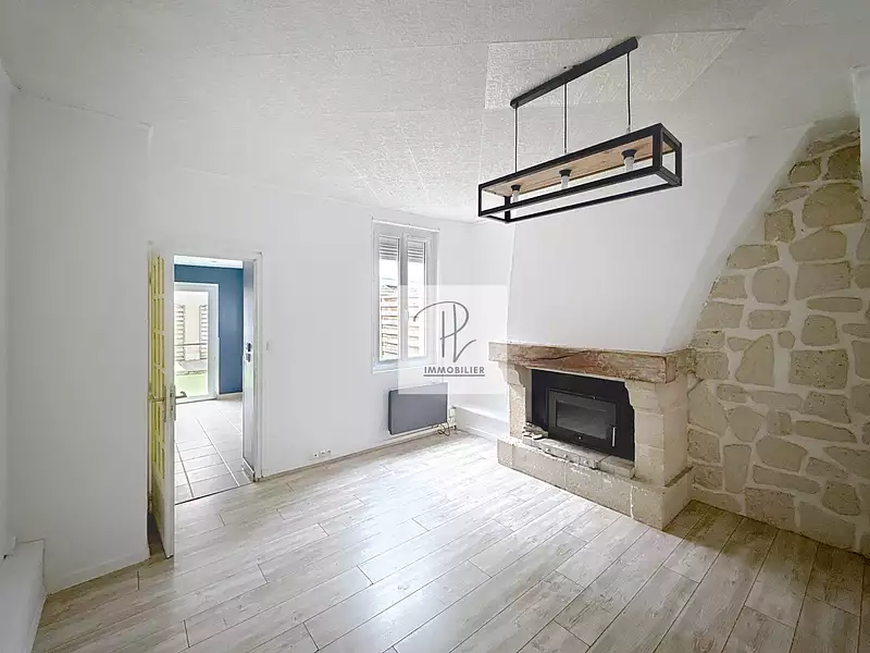 -au rez-de-chaussée : entrée, séjour/salon avec cheminée insert, cuisine aménagée et équipée, wc indépendant.