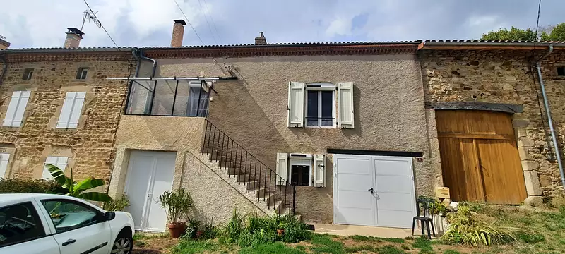 Maison en pierre de 74 m2 habitables composée : d'une cuisine, un salon-salle à manger, 3 chambres, une salle d'eau, wc, buanderie, garage et cave.