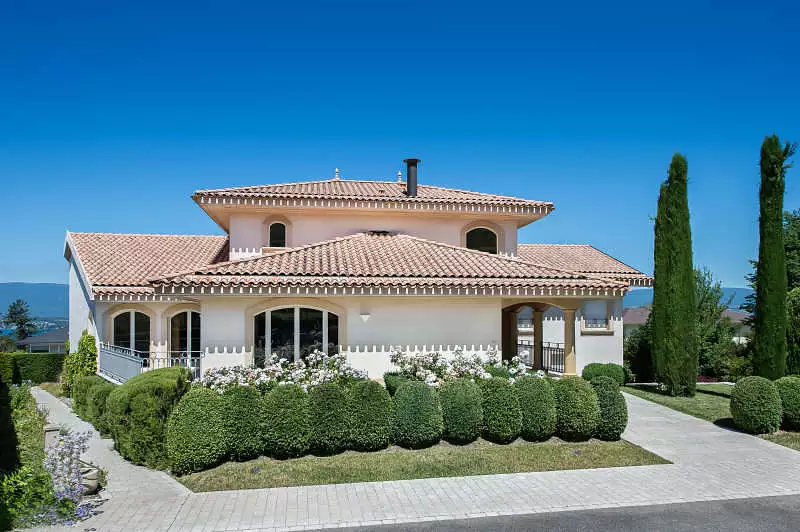 Proche frontière suisse, dans quartier résidentiel calme avec vue lac, Superbe Propriété sur terrain clos et aménagé de 2400m², comprenant une importante villa avec vaste séjour/salon, cuisine équipée, salon tv, bureau, atelier, vaste salon/billard, 5 chambres (chacune avec salle de bains balnéo, wc et dressing), Garage triple, Appartement de service de type 2 pièces, Piscine intérieure de 6x12,50m, spa, hammam, sauna, salle de sport... Ascenseur, Climatisation, aspiration centralisée, alarme....