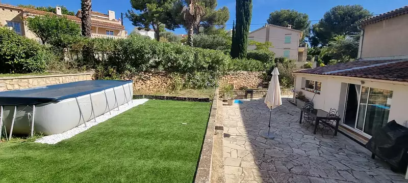 BANDOL - 83150 COUP DE COEUR ICI ET NULLE PART AILLEURS pour ce petit coin de paradis. Création neuve sous garantie décennale pour ce charmant plain-pied de plus de 70 m² qui vous offrira confort et sérénité. Édifié sur un terrain de 263 m² piscinable, situé en impasse avec entrée indépendante, il bénéficie d'une belle vue mer depuis le jardin et d'une immense terrasse pavée, une piscine hors sol et abri de jardin.
