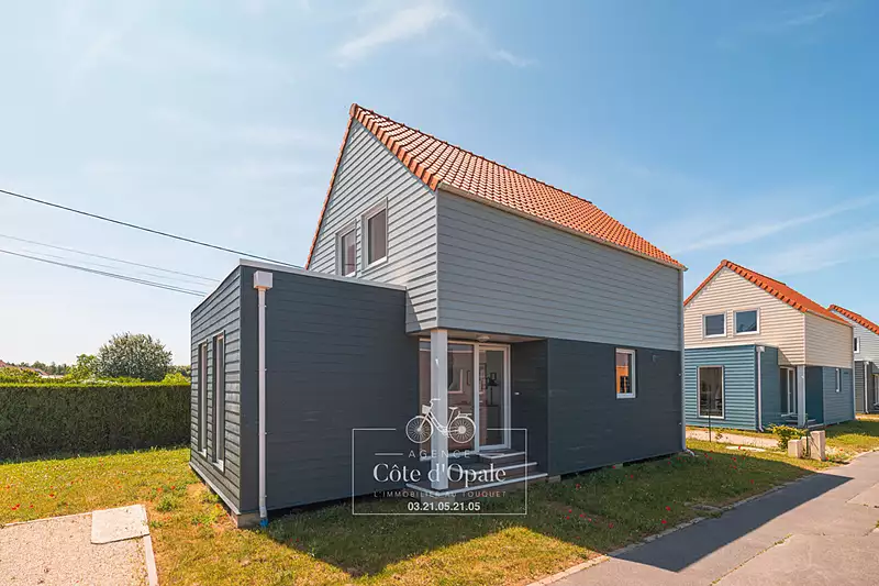 A quelques pas de La Madelon et à 10 mn des plages de Berck, venez découvrir ce chalet sur 2 niveaux construit sur pilotis en 2023 dans une résidence de Tourisme fermée et sécurisée. Il offre en rez-de-chaussée une pièce de vie très lumineuse, une cuisine entièrement équipée, un cellier, WC et une salle d'eau. A l'étage 3 chambres et une salle d'eau. Grande terrasse et jardin. Place de parking privative. Vous aurez un accès gratuit et illimité à la piscine de la résidence et vous pourrez profiter des balades jusqu'au port de la Madelon. Dépaysement garantis !