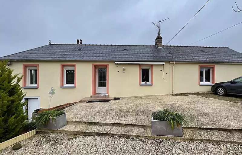 à 5 minutes au Nord de Mayenne, en campagne et sans vis à vis , jolie maison d'environ 70m² composé de : - Une Piece de vie avec une cuisine aménagée et un salon, un séjour, une chambre avec placard, une salle de douche avec WC, une petite chambre ou bureau. Buanderie en sous sol. Chauffage: Poêle à granules + radiateurs électriques Dépendances : Un atelier en bois attenant à la maison ainsi qu'un abri de jardin. Terrain de 480m² composé d'une cour et d'une terrasse devant la maison, une seconde terrasse sur l'arrière ainsi qu'un coin en pelouse.