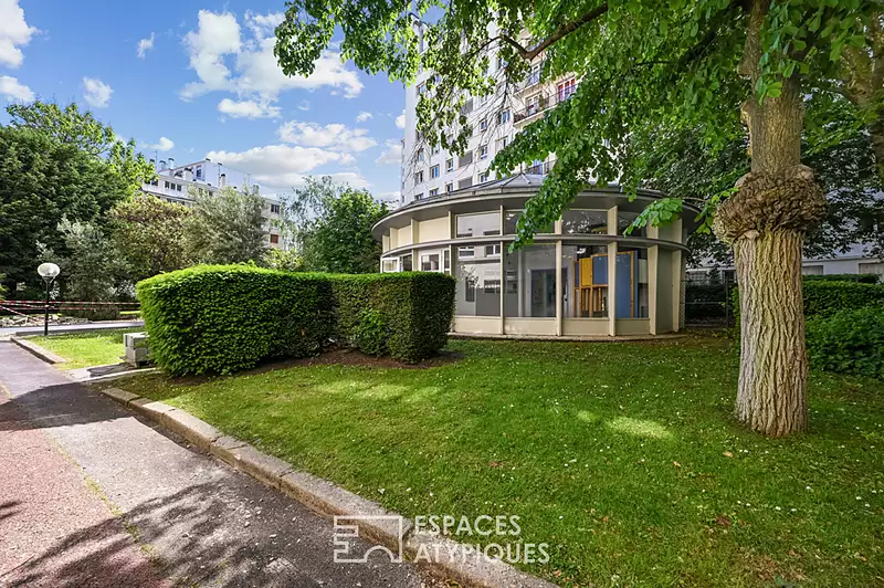 Située dans le quartier Saint-Charles, à deux pas de tous les commerces, une étonnante maison ronde aux allures de carrousel de 75 m² (74,59 m² carrez) et son confortable espace extérieur de 118 m² offrent une page blanche à vos envies. A l'écart de la rue, dans le jardin d'une copropriété avec gardien, cette adorable garderie accueillait il y a peu encore les rires et les jeux des enfants du voisinage. De plain-pied et entièrement vitré, son espace intérieur baigné de lumière s'ouvre sur un jardin et son agréable terrasse abritée par les arbres. De chaque côté de l'entrée, deux pièces de surfaces égales encadrent une perspective sur un vaste espace circulaire qui ne demande qu'à être réenchanté. Totalement atypique, les volumes et les proportions insolites se prêtent à toutes les interprétations. Sa bonne localisation, à équidistance des stations Javel, Lourmel et Charles Michels, et sa proximité immédiate du parc André Citroën en font le lieu idéal pour un nouveau chapitre de vie. Métros: Lourmel (ligne 8), Charles Michels et Javel (ligne 10) CLASSE ENERGIE : D / CLASSE CLIMAT : B. Montant moyen estimé des dépenses annuelles d'énergie pour un usage standard, indexées aux années 2020, 2021, 2022 : entre 1 140 euros et 1 560 euros. Les informations sur les risques auxquels ce bien est exposé sont disponibles sur le site Géorisques : https://www.georisques.gouv.fr Contact : Florent BRUNCO - 06 58 86 41 87 - EI - Agent commercial - RSAC : 910 328 731 NANTERRE Copropriété de 173 lots (Pas de procédure en cours). Charges annuelles : 4854 euros. Florent BRUNCO (EI) Agent Commercial - Numéro RSAC : - PARIS.