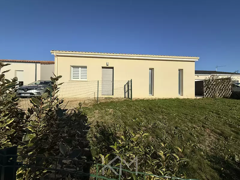 KM immobilier vous présente en EXCLUSIVITE sur la commune ROCHES PREMARIE ANDILLE proche de Smarves, une maison de plain-pied de 2021 d'environ 75 m2 comprenant : un salon séjour donnant sur une terrasse avec cuisine aménagée et équipée, un cellier, un couloir, deux chambres avec placards, une salle d'eau, un WC. La maison se situe sur un terrain de 468 m2 clos avec un abri de jardin.