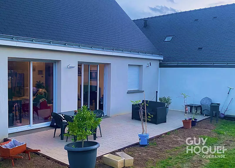Posez vos valises dans cette superbe maison de plain-pied, au coeur de Saint-Lyphard, à deux pas des commerces et des écoles. Situé à 15 minutes de Guérande et 10 minutes d'Herbignac. Construite en décembre 2024, bénéficiant de la norme RT2020, équipée d'un chauffage au sol, elle combine style moderne et confort absolu, le tout encore couvert par ses garanties décennales. Dès l'entrée, laissez-vous séduire par une pièce de vie baignée de lumière avec sa cuisine ouverte, idéale pour partager de bons moments en famille ou entre amis. Côté nuit, deux chambres chaleureuses vous attendent avec possibilité d'en faire une troisième, accompagnées d'une salle d'eau moderne, d'un WC indépendant et d'un local technique menant directement au garage : pratique et fonctionnel ! A l'extérieur, profitez d'un terrain de 379 m² avec un jardin agréable et une terrasse parfaite pour savourer vos moments de détente dans un environnement paisible. (5.42 % honoraires TTC à la charge de l'acquéreur.) Gaëtan Vasselin (EI) Agent Commercial - Numéro RSAC : - .