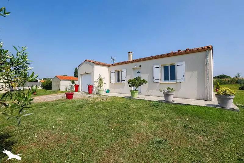 A quelques minutes de JONZAC, pavillon plain pied composé d'un séjour/salon ouvert sur cuisine aménagée et équipée d'env. 40 m² donnant sur une terrasse, cellier, deux chambres dont une avec dressing, salle d'eau avec douche à l'italienne, wc. Garage attenant. Jardin clos et arboré d'env. 1 000m² avec piscine hors sol. Proposition d'aménagement virtuel non contractuelle en dernière photo.