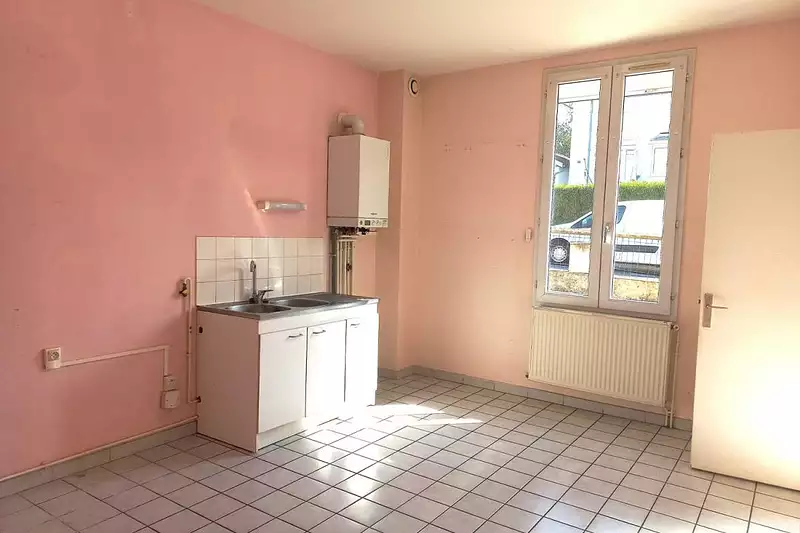 Description :Maison mitoyenne de type 3 disposant d'une entrée avec placard, d'une cuisine séparée, d'un séjour, d'une salle d'eau et WC séparé. À l'étage, 2 chambres.