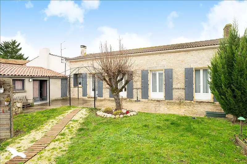 Dans un hameau de St Pierre d'Oléron, un ensemble immobilier comprenant: Une maison avec séjour/cuisine, deux chambres, salle de bains et dépendance. Et un ensemble de chais communicants pour une surface totale d'environ 350m². Le tout sur une parcelle de plus de 750m². Logement à consommation énergétique excessive : classe F