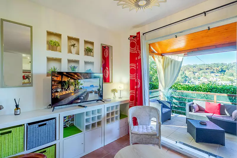 Bien d'exception, niché dans un écrin de tranquillité, garantie d'une intimité appréciable, cette maison se présente comme une opportunité de vie paisible et raffinée. Dès l'entrée vous serez accueilli par une espace de vie lumineux, s'ouvrant sur une terrasse couverte, orientée sud-ouest, offrant une vue magnifique et dégagée. 2 chambres, salle d'eau moderne, 2 Wc. Prestations de qualités. Climatisation réversible. Chauffe-eau thermodynamique. Adoucisseur. Garage. Parking. Résidence sécurisée offrant 2 grandes piscines. Très bon rapport locatif. Le bien est vendu meublé. Copropriété de 116 lots (Pas de procédure en cours). Charges annuelles : 2500 euros. Sylvia Planes (EI) Agent Commercial - Numéro RSAC : - .