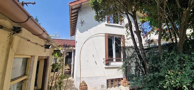 AULNAY SUD. Maison avec garage et dépendance sur 221m² de terrain comprenant au rdc: séjour-salon, cuisine séparée, une chambre, salle d'eau, wc, cellier. A l'étage: une chambre et un bureau. Terrasse avec barbecue et petite cour à l'arrière. Egalement une deuxième entrée véhicule. TRAVAUX A PREVOIR mais du POTENTIEL !!! Excellent quartier à visiter rapidement.