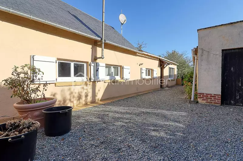 Dans un bourg avec commerces et écoles, cette maison vivable de plain pied se compose de :