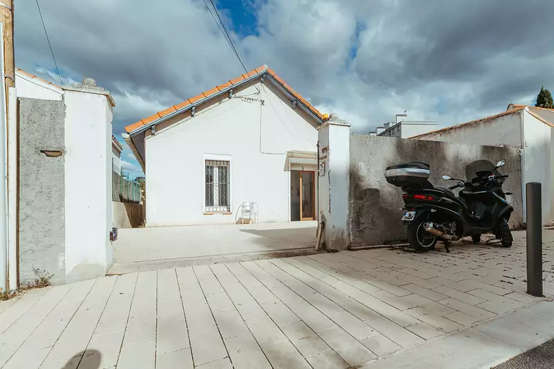 SEVEN70 Immobilier vous invite à découvrir: Dans le trés prisé Ancien Chemin de Cassis dans le quartier du Cabot, au calme mais à proximité de toutes les commodités, une maison non mitoyenne de plein pied de 78m2 sur une parcelle de 405m2. Cette maison est dotée d'un portail électrique qui s'ouvre sur une terrasse pouvant accueillir 2 voitures. La maison se compose d'un séjour , d'une cuisine équipée et spacieuse, de deux chambres ainsi que d'une salle de bains avec douche à l'italienne récente. Le séjour et la cuisine sont climatisés, la maison est équipée de fenêtres double vitrages. Une mise au gout du jour peut être envisagée. une extension n'est pas possble. Le séjour et la cuisine s'ouvre à l'arrière de la maison sur une terrasse et un jardin arboré, calme et piscinable.