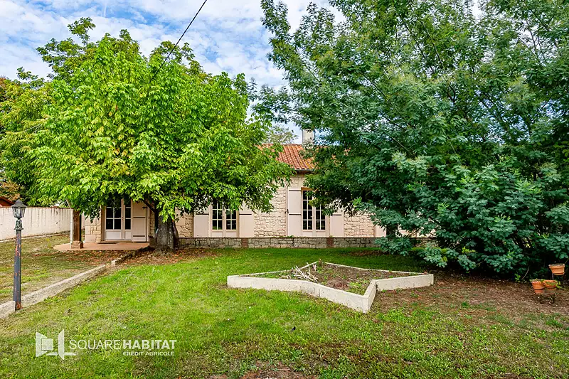 Exclusivité square! Proche sainte Foy la grande venez visiter cette charmante maison de plain pied offrant une entrée, un salon avec cheminée, une cuisine, deux chambres, salle d 'eau, toilettes. sur l arrière de la propriété, un double garage de 54m² . la maison est proche des commodités et des écoles Prévoir quelques travaux d 'améliorations. jardin clos de 2260m²