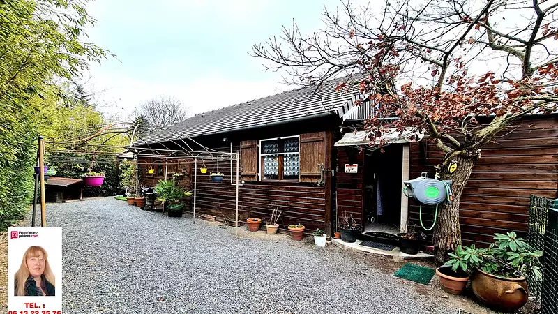 Prix 149.900 euros - Saint Aubin sur Gaillon 27600 Proche - Chalet en bois de 77.04 m2 - 2 chambres sur 594 m2 de terrain clos et arboré - Mandat : 392840 - Tél. : 06.13.22.35.76