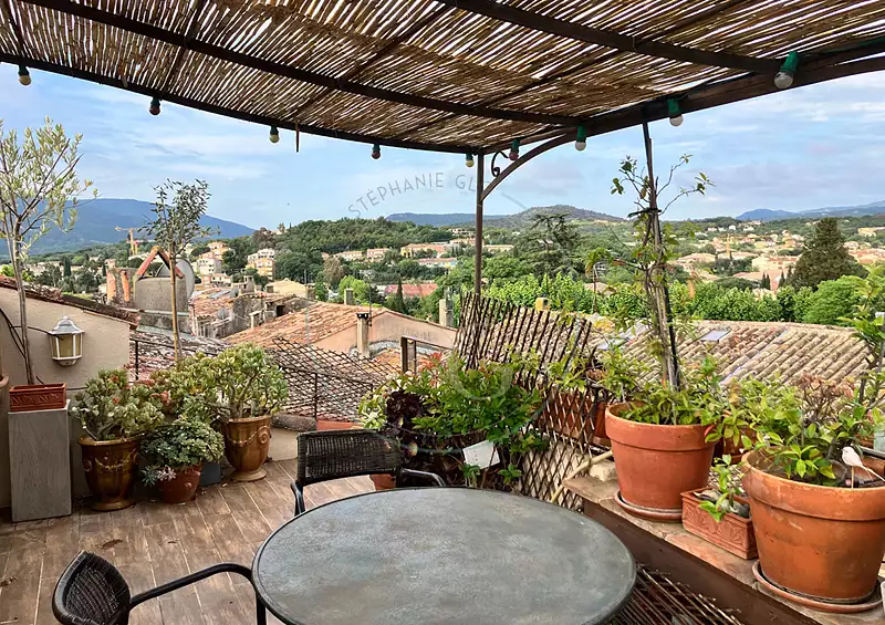 L'agence Stéphanie Glo vous propose à la vente, cette maison de village typique en pierre. Cette maison est répartie sur 3 niveaux. Au rez-de-chaussée : Studio indépendant avec salle d'eau, wc et kitchenette. Au premier étage : Espace chambre, une salle de bain avec wc et dressing. Au deuxième étage : Salon/Salle à manger, cuisine avec accès à la terrasse Tropézienne et un wc avec buanderie. Au troisième étage : Terrasse Tropézienne d'environ 20 m² avec une vue imprenable sur le massif forestier. Ne manquez pas cette opportunité unique ! Contactez-nous dès maintenant pour organiser une visite. Flora GUISIANO (EI) Agent Commercial - Numéro RSAC : - .