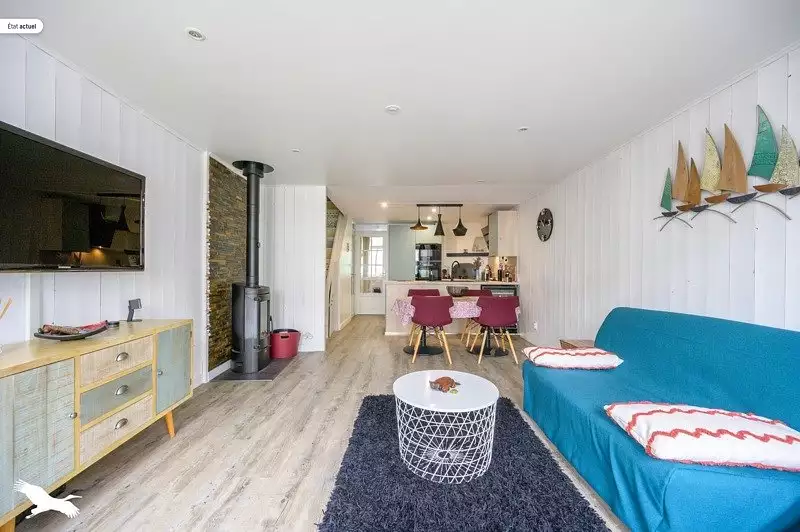 A proximité de la place d'Antioche et de ses commerces, 10 minutes des plages. Maison de ville en parfait état offrant une pièce de vie lumineuse avec cuisine de 2024, grand cellier/buanderie avec entrée indépendante sur rue pour vos vélos, trois chambres et salle d'eau. Terrasse et parking - Aucun travaux à prévoir. Proposition d'aménagement virtuel non contractuelle en dernière photo.