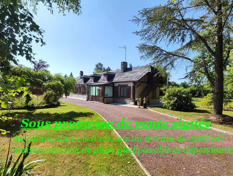 A 15 min Sud Est de Lisieux et 10 min de Thiberville. Située au calme, en campagne sans être trop isolée, dans un très bel environnement boisé, cette maison vous propose une vie de plain pied avec son entrée sur une véranda, séjour-salle à manger avec une belle cheminée, une cuisine aménagée et équipée, une salle d'eau, un wc et un couloir desservant 2 chambres. A l'étage mansardé se trouve un bel espace pouvant accueillir une chambre ou un bureau, un cabinet de toilettes (wc et lavabo), une espace rangement. Fenêtres DV PVC couleur bois. Travaux de rafraichissement à prévoir mais habitable rapidement. Attenant un bel atelier avec chaufferie (chauffage central fuel). 2 abris de jardin. L'ensemble sur un magnifique terrain de 2287 m² clos et arboré avec petit plan d'eau. Prix TTC et Honoraires à charge vendeur TTC Agent commercial Sextant France - Déborah Dutot agent basé à COURTONNE LES DEUX EGLISES - 07 80 31 17 09 - Plus d'informations sur réf. 25704