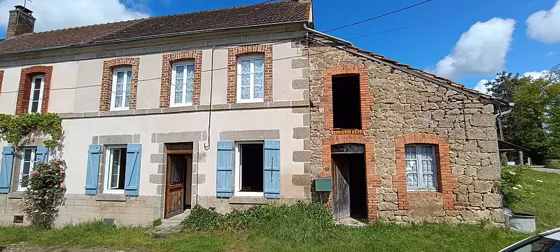 Maison composée de : Cave en sous-sol Rez de chausssée : Entrée, salon, cuisine, arrière cuisine 1er Etage : 2 chambres, bureau Combles aménageables au-dessus Travaux de rénovations à prévoir Dépendances : Fournil avec four à pain en état ; Grange de 200 m2 au sol Terrain attenant de 1600 m2 (10.00 % honoraires TTC à la charge de l'acquéreur.)