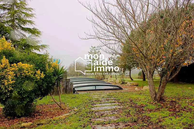 A l'extérieur, vous pourrez profiter d'un grand terrain de 5000 m², avec une piscine équipée d'un dôme.