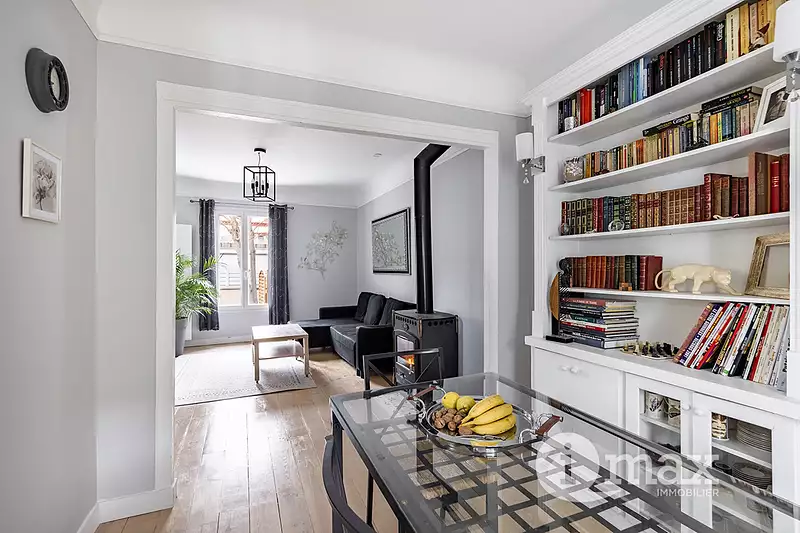 Notre coup de coeur! Dans une petite impasse pavillonnaire, à deux pas de commerces et des transports, charmante maison en parfait état général d'une superficie pondérée de 80 m². Elle se compose d'une entrée, d'un beau double séjour traversant avec poêle, d'une cuisine aménagée et de wc séparés. Au 1er étage, deux grandes chambres, une salle d'eau avec wc. Sous sol total à aménager. Jardin bien exposé et accès voiture. A visiter rapidement! DPE: D. (3.00 % honoraires TTC à la charge de l'acquéreur.)