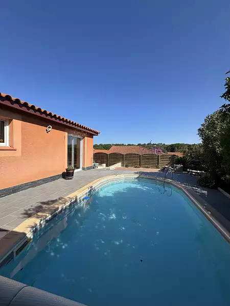 Située dans une résidence sécurisée, découvrez cette agréable villa de plain-pied, en 3 faces, offrant une surface habitable d’environ 80 m2 sur un terrain de 200 m2. Elle se compose d’une entrée menant à une cuisine semi-ouverte entièrement équipée, ainsi qu’à un lumineux salon-séjour exposé sud-ouest. L’espace nuit comprend trois chambres avec placards intégrés, une salle d’eau récemment rénovée, et des toilettes séparées. Côté extérieur, vous apprécierez un jardin joliment arboré avec piscine, terrasse et un coin cuisine d’été, idéal pour vos moments de détente. Un garage indépendant et la climatisation complètent les prestations de cette maison prête à emménager.