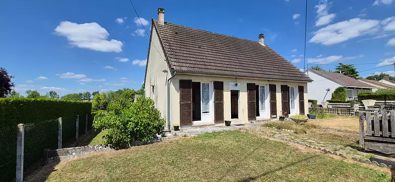 Vaumoise Pavillon de plain pied comprenant : Une entrée, une cuisine aménagée équipée, un séjour double, trois chambres, une salle de bains et un wc ind. Un sous-sol total avec garage. L'ensemble sur un terrain de 688m². (6.83 % honoraires TTC à la charge de l'acquéreur.)