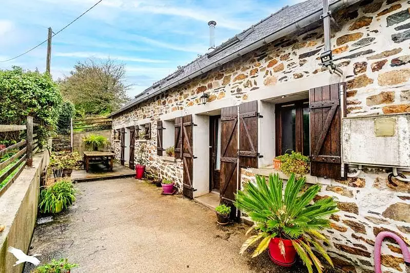 A 3 min de Chateaulin cette maison plain pied avec hangar propose 3 chambres, une salle d'eau et une salle de bain. On apprécie la superfie du terrain et le cachet de la maison en pierre. Proposition d'aménagement virtuel non contractuelle en dernière photo.