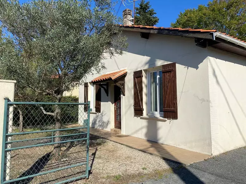 Maison de plain pied d'environ 80m² comprenant une entrée, deux chambres une belle pièce de vie, une cuisine aménagée, un cellier, une salle d'eau et un WC.