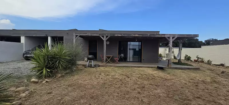 La villa comprend un séjour-cuisine, un cellier, un WC indépendant, un dégagement, deux chambres et une salle d'eau.