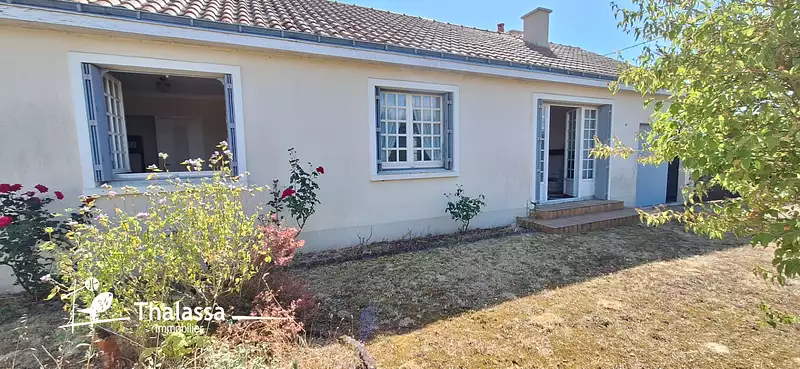 EXCLUSIVITÉ à La Bernerie-en-Retz, dans un secteur résidentiel calme et recherché, cette maison de plain-pied est un véritable havre de paix, niché à seulement 500 m de la plage et 800 m des commerces. Elle se compose d'un séjour double, d'une cuisine ouvrante sur véranda et jardin, de deux chambres, d'une salle de bains, d'un WC indépendant, d'un garage et d'une dépendance. Le tout sur une parcelle généreuse d'environ 1 000 m², dans un environnement paisible à pied de tout. Agrandissement possible et piscinable ! Idéal en résidence principale ou maison de vacances familiale. Cette maison évolutive offre beaucoup de possibilités. Contactez nous rapidement pour une visite ! (4.20 % honoraires TTC à la charge de l'acquéreur.)