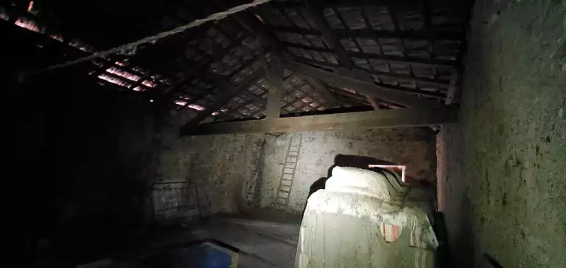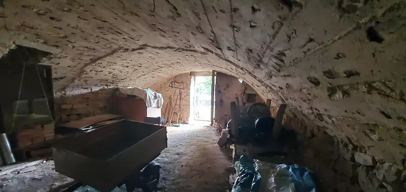 Une grande cave de 30 m², idéale pour un espace de stockage ou un atelier.
