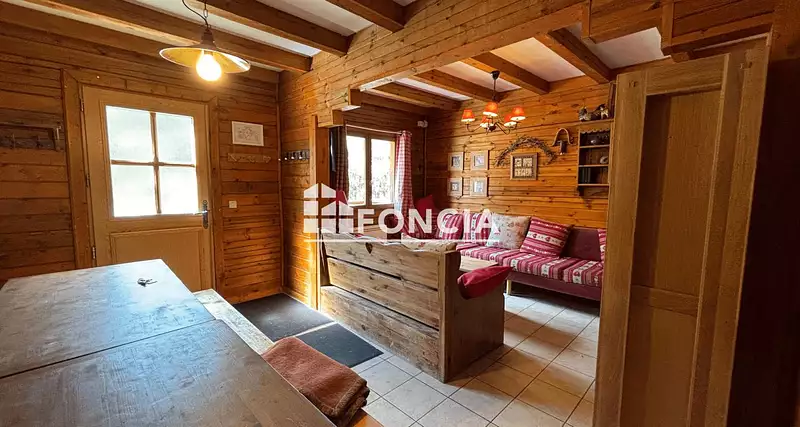 Aux pieds de la piste de la Petite Aiguille, ce chalet de 80 m² comprend au rez-de-chaussée un séjour en L avec cuisine ouverte, une chambre, un sauna, une buanderie et une terrasse avec jacuzzi. À l'étage, quatre chambres avec douche et lavabo, dont deux avec mezzanine et balcon, offrent un espace fonctionnel. Le bien dispose également de deux WC séparés et d'une place de parking.