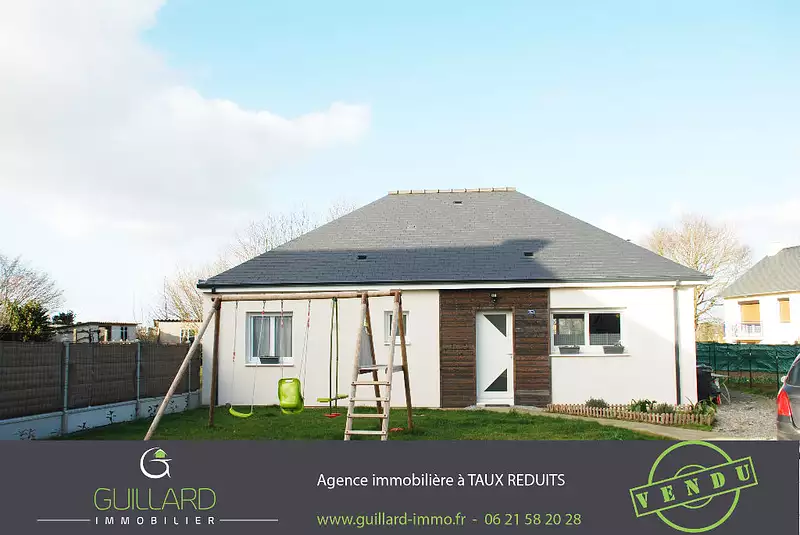 Maison vendue en deux visites par l'agence GUILLARD IMMOBILIER Maison de plain-pied composée d'une cuisine aménagée-équipée ouverte sur le salon-séjour agrémenté d'un poêle à granulé vous offrant ainsi de beaux volumes de près de 40 m², trois chambres avec placards, une buanderie, une salle d'eau, wc séparé. Le tout sur un terrain clos et engazonné de 618m². GUILLARD Immobilier - Agent indépendant à taux réduits Le savoir-faire d'une professionnelle, la disponibilité d'une indépendante, à honoraire réduit ! Contactez-moi au 06 21 58 20 28