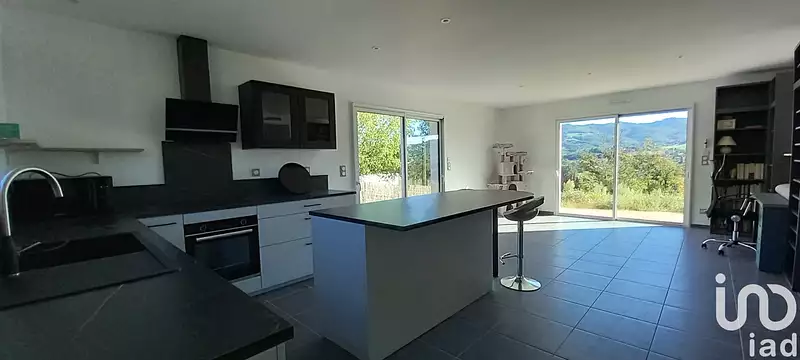 - Pièce de vie de 37 m² avec cuisine aménagée/équipée (four, plaques, hotte), meubles intégrés au séjour et deux baies vitrées, dont une plein sud équipée d’un store électrique à l'extérieur