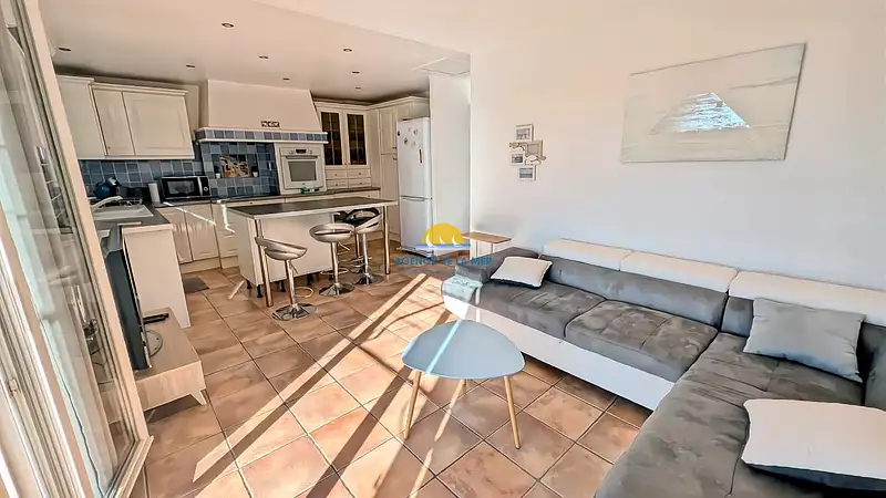 SAINT-RAPHAEL: Charmante villa dominante de 80m2, traversante, belle vue dégagée sud, composée de : une loggia, terrasse, hall, séjour donnant sur balcon, cuisine ouverte, 1 chambre,