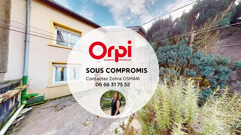 Zohra OSMANI, agent immobilier ORPI Villerupt Immobilier, vous propose à la vente à Thil, une maison mitoyenne, avec un potentiel habitable de +/- 100 m² (80 m² habitable actuellement), avec deux chambres (possibilité d'en créer une 3ème) et un garage.
