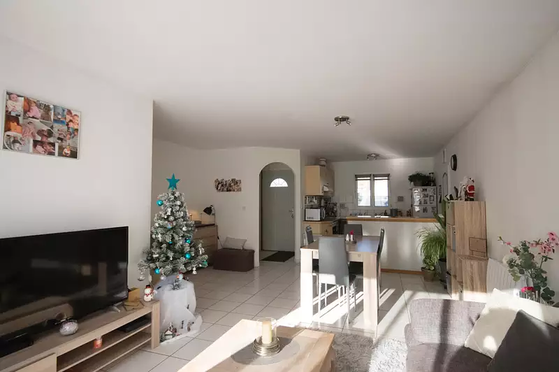 A 2 minutes du centre ville, plain pied construit en 2002 et édifié sur une parcelle close et arborée de 422m² .