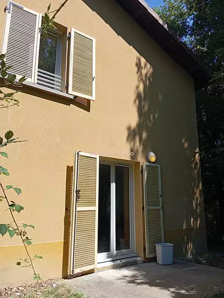 - Maison T4 sur 2 niveaux, comprenant au rez-de-chaussée : entrée, wc, escalier, rangement, cuisine, séjour donnant sur un petit espace vert (avec terrasse) avec vue sur un joli bois.