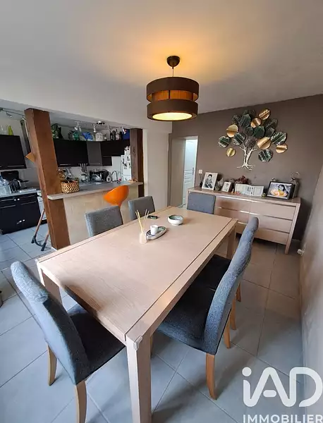 iad France - François Legre vous propose: Maison en pierre, avec enduit, 4 Pièces, 2 Chambres, de 81 m2 habitables, comprenant, au rez-de-chaussée, une entrée directe sur le salon, une cuisine aménagée, équipée, ouverte sur la salle à manger, suivent salle d'eau et WC séparé, et à l'étage, un palier, large et pratique, puis un couloir, avec rangements, desservent deux chambres et une salle de bain avec WC.