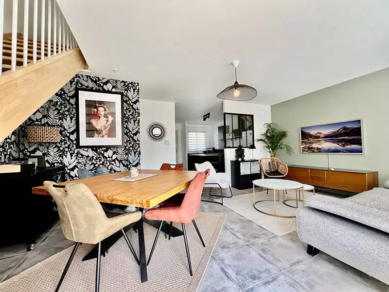 La maison dispose d'un garage de 14 m² avec espace buanderie, de deux places de stationnement extérieur et d'un magnifique jardin entièrement clôturé.
