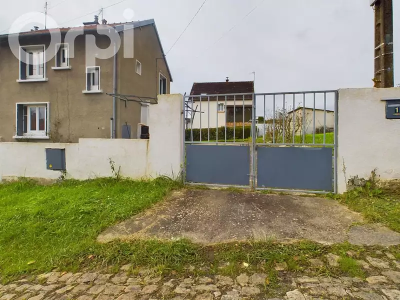 Vierzon Forges, quartier calme, maison mitoyenne offrant 81 m² habitable et comprenant entrée, séjour, cuisine aménagée, 3 chambres et salle de bains à l'étage, deux WC, garage indépendant et beau terrain clos de 576m². chauffage central au gaz, double vitrage et tout à l'égout.