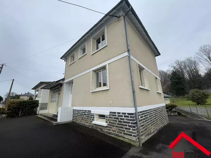FAUREIMMO.FR / Une maison d'habitation comprenant salon-séjour, cuisine, trois chambres, salle d'eau, deux wc, sous-sol complet, trois garage, dépendance, le tout sur un terrain d'environ 1700m2 entièrement clos et arboré. CONTACT : 05 87 49 45 36 -