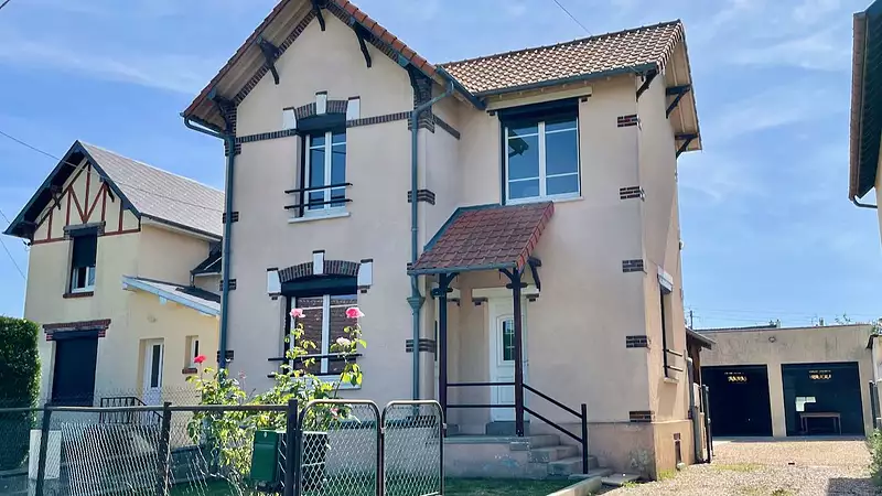 Exposée Sud et Ouest, la maison se compose au rdc de 3 pièces sur superbes carreaux de ciment d'origine et un parquet massif à restaurer, une cuisine séparée, une salle de bains avec WC. Une véranda complète le rdc avec accès à une grande cave silex semi enterrée. A l'étage, un palier distribue 3 chambres d'environ 10,5 m2 chacune sur parquet massif. Chauffage central gaz de ville. Double vitrage PVC et volets roulants sur l'ensemble. Travaux de rénovation à prévoir. Fibre déployée.