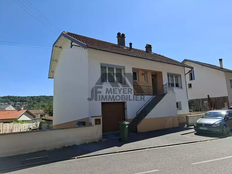 Maison élevée sur sous-sol complet, 2 chambres, salon-séjour, cuisine, salle de bains et wc.