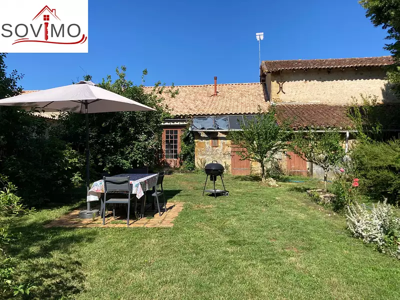 REF. 34510 : 69 300 euros H.A.I, Pressac (86), bourg dynamique avec commerces, EXCLUSIVITÉ ! dans un hameau, beau potentiel pour cette maison et jardin au calme, à usage d'habitation, 82 m2 env. utilisables, composée au rez de chaussée : cuisine, salon/séjour (poele à pellets), 1 chambre, salle d'eau/wc, cuisine d'été de 8 m2, remise de 15 m2, à l'étage : palier, 1 chambre, grenier aménageable de 36 m2 env., chauf. électrique, tout à l'égout. Toiture neuve. Grange attenante avec étable (toiture état d'usage), terrain attenant avec puits et appentis, le tout sur 1437 m2.