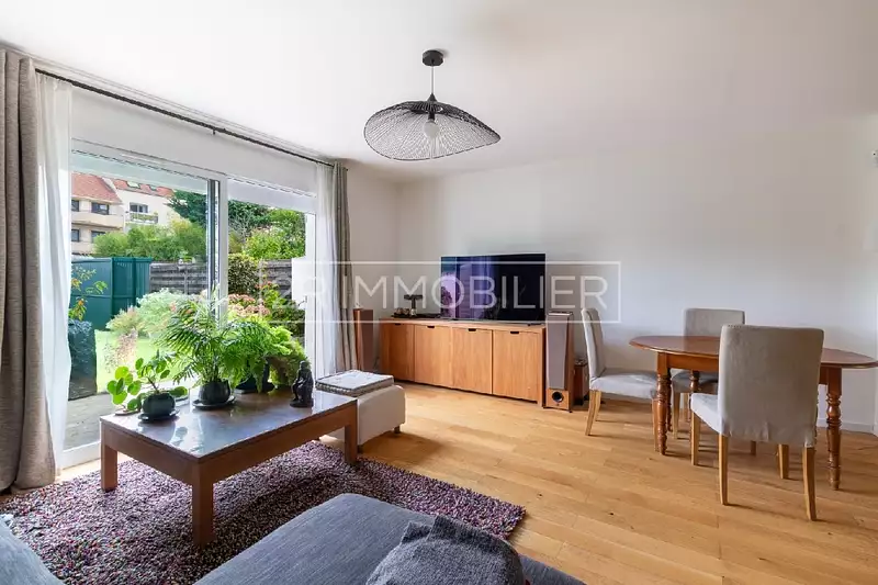 Édifiée sur une parcelle d'environ 190 m², elle offre au rez-de-chaussée : une entrée, un séjour lumineux de près de 28 m² ouvrant directement sur la terrasse et le jardin, une cuisine séparée et équipée, ainsi qu'un WC indépendant.